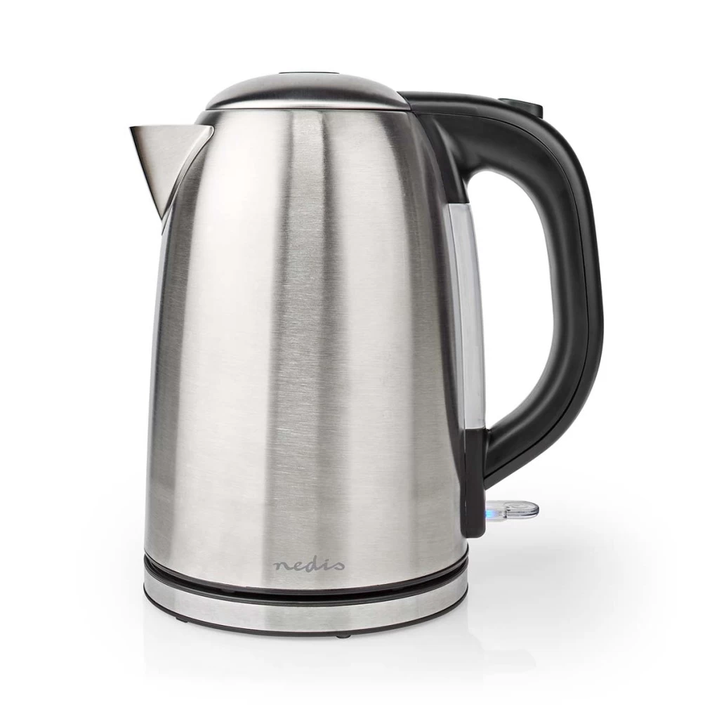 Deze stijlvolle, krachtigeNedis KAWK350EAL waterkoker werkt net zo goed als dat hij eruit ziet. De waterkoker heeft een grote capaciteit van 1,7 liter en kookt water snel dankzij het verborgen verwarmingselement van 2200 watt. Door de roestvrijstalen afwerking is deze waterkoker een stijlvolle, duurzame en eenvoudig te reinigen aanvulling in je keuken. De waterkoker is ontworpen met een inhoud die genoeg is voor zes tot acht koppen thee. De 360°-basis maakt de waterkoker geschikt voor zowel links- als rechtshandigen. De waterkoker kan van de basis worden genomen om eenvoudig te vullen met water of uit te schenken. Het deksel met drukknoppen opent soepel met één druk op de knop en voorkomt dat stoom tegen je lichaam kan komen. De grote opening maakt kinderspel van het schoonmaken, net als het verborgen verwarmingselement. De waterniveau-indicator aan de achterkant geeft duidelijk de hoeveelheid water in de waterkoker aan. Als het water kookt, wordt de kanvormige waterkoker automatisch uitgeschakeld. Daarnaast heeft de waterkoker ook een droogkookbeveiliging. De antislipvoetjes zorgen ervoor dat de waterkoker stabiel en veilig staat. De voedingskabel kan rond de basis worden gewikkeld om de waterkoker eenvoudig in je keuken op te bergen.